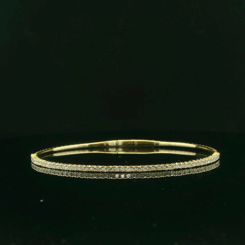 Experience timeless elegance with this flexible tennis bracelet, meticulously crafted in lustrous 10k yellow gold gold. The bracelet features a continuous stream of round cut lab grown diamonds, adding up to 1cttw. A perfect balance...