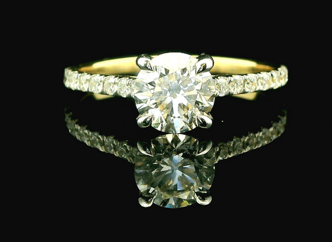 Exquisitely crafted in lustrous 10K yellow gold, this engagement ring showcases a brilliant-cut 1.25 ctw lab-grown diamond. The classic round shape accentuates its inherent sparkle. A timeless symbol of enduring love and commitment, perfect for...