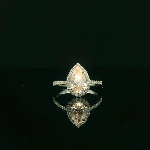 Presenting an elegant engagement ring, expertly crafted in 14k white gold. The 1.46 cttw ring features a captivating pear-shaped, fancy light pink diamond, showcasing a brilliant cutting style. This exquisite piece embodies timeless beauty and...