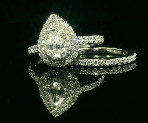 Capture her heart with this exquisite 14k white gold 1.50 cttw lab grown diamond engagement ring set. Showcasing a brilliant-cut .50 ct pear-shaped diamond in the center, with a beautiful band that sits flush against...
