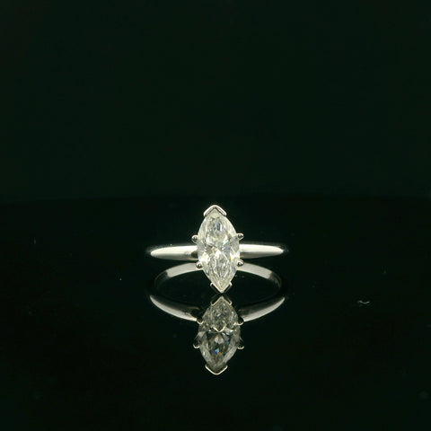 Exquisitely crafted, this solitaire ring showcases a mesmerizing 1.00 ct marquise-cut lab grown diamond, celebrated for its elongated silhouette and brilliant sparkle. The diamond, meticulously cut to maximize light performance, is securely set in lustrous...