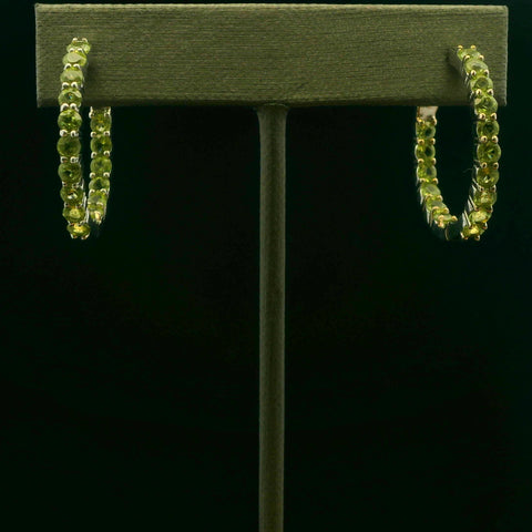 Elevate your style with these captivating hoop earrings, crafted in lustrous sterling silver. Each earring showcases a sequence of round-cut green gemstones. The brilliant cutting style of the green gemstones enhance their vibrant green hue,...