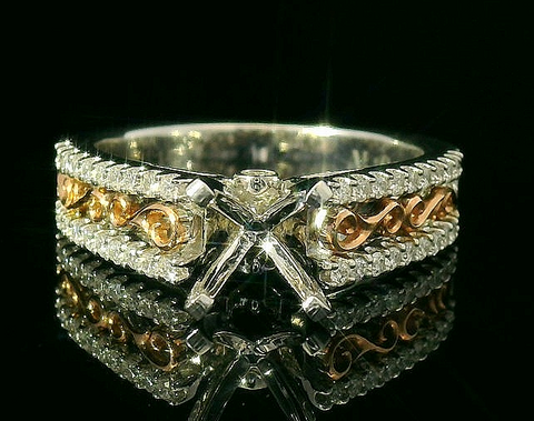 Discover the exquisite beauty of this two-tone 14k semi mount ring, featuring a stunning blend of rose gold and white gold. The intricate design showcases sparkling diamonds that catch the light beautifully, making it a...