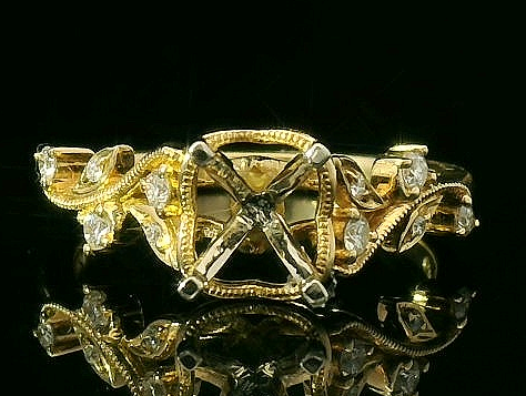 14KT YG (holds 6.5 mm RD) Bexley .12 cttw Naledi Semi-Mount w/band. G-H SI 1/ SI 2 (Sale $3525) CENTER STONE NOT INCLUDED