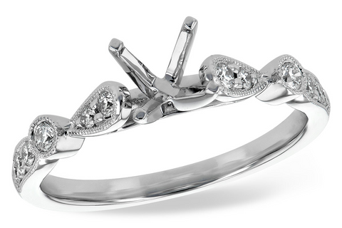 This stunning 14k semi-mount diamond engagement ring features a brilliant round-cut center stone (not included), surrounded by delicate pave-set diamonds on the band. 0.13 cttw. Crafted in high-quality white gold, it radiates elegance and sophistication,...