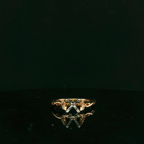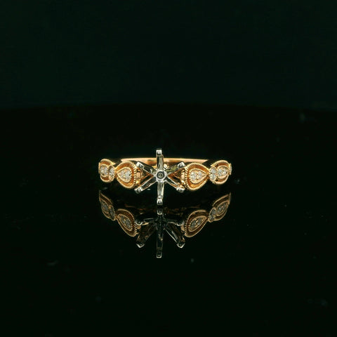 Elevate your center stone with this exquisite .10 cttw ring semi mount. Crafted in 14k rose gold, the design features delicate detailing, perfect for showcasing a brilliant round cut diamond or stone of your choice....