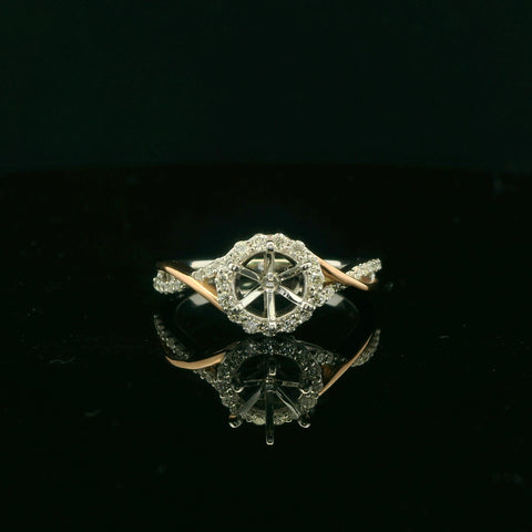 Elevate your fine jewelry collection with this exquisite .31 cttw ring semi mount. Crafted from lustrous 14k white and rose gold, it holds a 1ct brilliant-cut round stone of your choice. Its composition and arrangement...