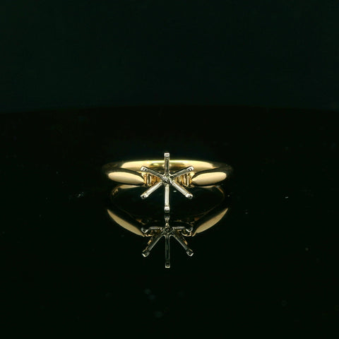 This is a classic ring semi mount crafted from radiant 14k yellow gold. The ring features a prong setting awaiting the perfect gemstone to be set, allowing for a personalized touch. A timeless piece that...