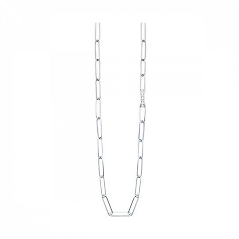 Exude elegance with this sterling silver long layering necklace. This features brilliant cut round brilliant white gemstones through the chain making it the perfect piece to dress up or wear everyday.