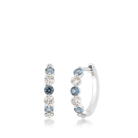 Enhance your ensemble with these elegant hoop earrings, crafted in lustrous 14k white gold. The classic round cut diamonds are arranged in a brilliant setting, creating a dazzling display of light. The YOGO sapphires are...