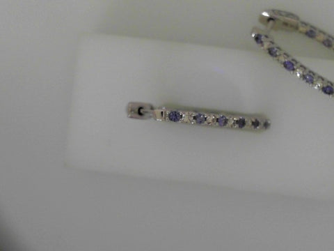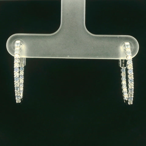 Enhance your ensemble with these elegant hoop earrings, crafted in lustrous 14k white gold. The classic round cut diamonds are arranged in a brilliant setting, creating a dazzling display of light. The YOGO sapphires are...