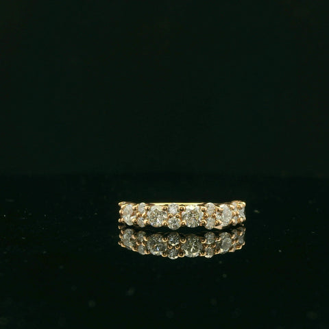 This exquisite ring features a delicate 14k yellow gold band, adorned with a row of .30ct brilliant-cut diamonds. The classic design and fine craftsmanship make it a timeless piece. It captures the light with every...