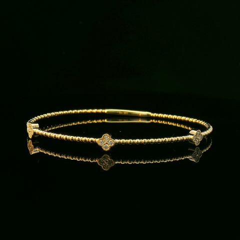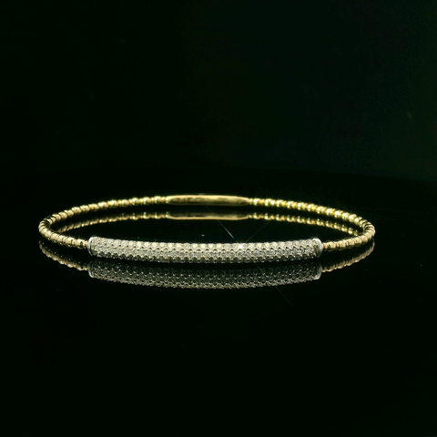 14KY Beaded Round Bezel Set Diamond .39CTTW center Flex Bangle Sale 1299