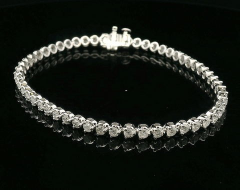 This stunning 14k white gold diamond tennis bracelet features a delicate design that sparkles with every movement. Crafted with precision, it showcases a continuous line of brilliant diamonds, making it the perfect accessory for any...
