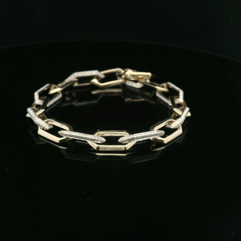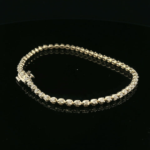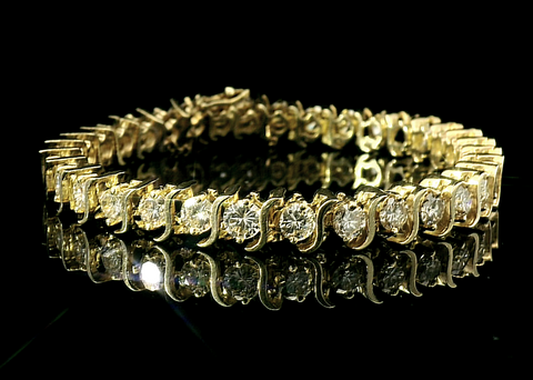 This stunning 14k gold bracelet features a series of sparkling stones that catch the light beautifully. 9.80 cttw. Perfect for any occasion, it adds a touch of elegance to your outfit. Wear it alone or...