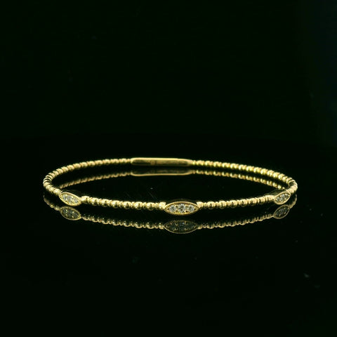 This stunning 14k gold bracelet features intricate detailing and sparkling diamonds, making it a perfect accessory for any occasion. 0.21 cttw. Its elegant design ensures it can be worn alone or stacked with other pieces...