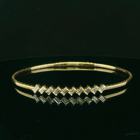 Elevate your ensemble with this exquisite tennis bracelet. Crafted in radiant 14k yellow gold, this elegant piece features .90cttw meticulously cut baguette diamonds. The diamonds, transparent and impeccably polished, are arranged in a sleek, linear...