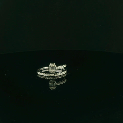 This elegant multistone ring features a minimalist design crafted from lustrous 14kt white gold. The band is adorned with .33 cttw meticulously set diamonds showcasing a mixed cut style, creating a captivating display of brilliance...