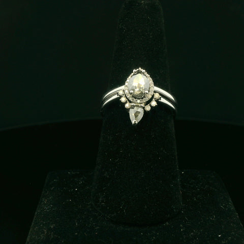 Elevate your elegance with this mesmerizing ring set. The design features a .86ct pear-shaped Salt and Pepper Diamond . The second ring is a .18ct pear shaped Salt and Pepper Diamond design with a modern...