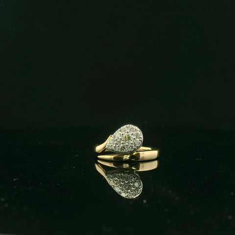 Indulge in the luxurious allure of this beautiful ring, expertly crafted in radiant 14k yellow gold. The ring features a collection of brilliant cut round diamonds, meticulously set to create a captivating display of light...
