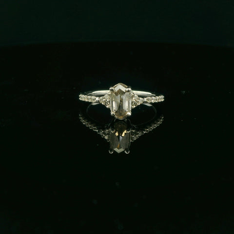 This exquisite multistone ring features a 1.09 ct Long Hex Cut Salt and Pepper Diamond with .18ct diamonds running down the 14k white band. The ring showcases a refined arrangement, enhancing the diamond's unique color...