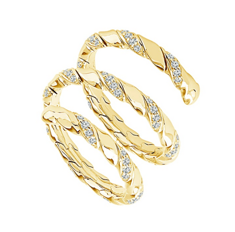 Fashion Jewelry of the future! This stunning 14k yellow gold flexible ring is meant for everyone, holding 5/8 cttw of diamonds, there is no sizing required, it stretches and shrinks around your finger to be...