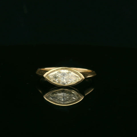 Exquisitely crafted in luminous 14k white gold, this ring features a mesmerizing .74 ct Blue Irradiated Salt and Pepper Kite Cut Diamond. Its surrounded by .09ct diamonds.