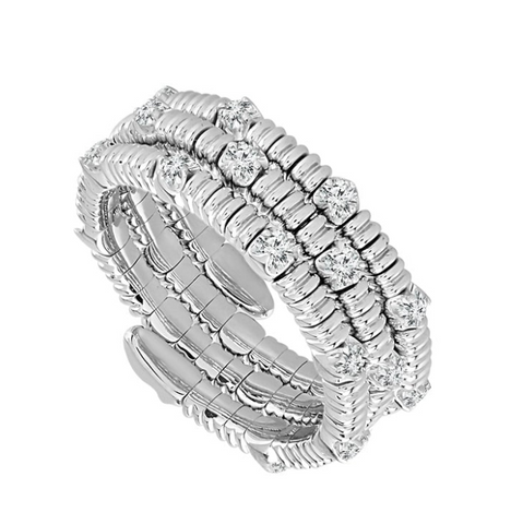 Fashion Jewelry of the future! This stunning 14k white gold flexible ring is meant for everyone, holding 5/8 cttw of diamonds, there is no sizing required, it stretches and shrinks around your finger to be...