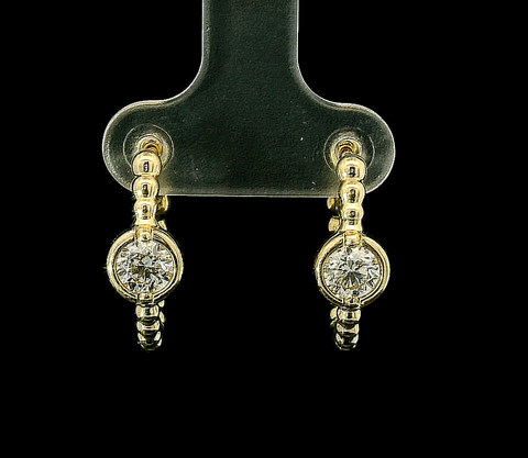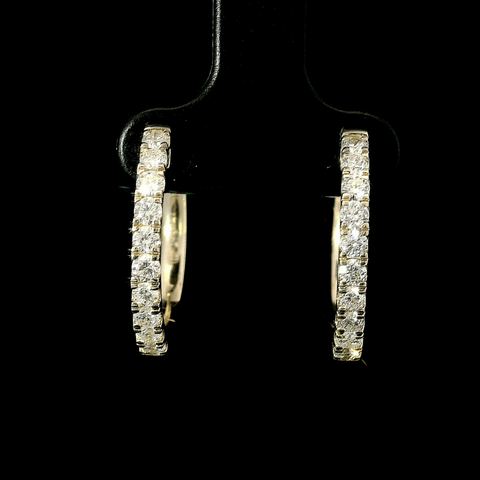 These stunning 14k yellow gold diamond hoop earrings are the perfect accessory for any occasion. Crafted with precision, they feature a delicate design that sparkles with every movement, making them a must-have for your jewelry...