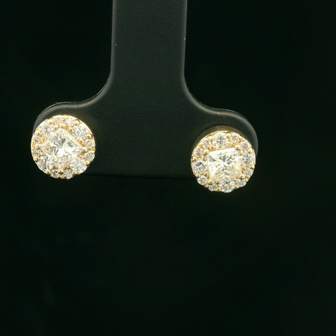14K YG .72 cttw (.47 cttw 2pc ctr stone JKVS-SI1) round dia halo earrings (Sale $2438)