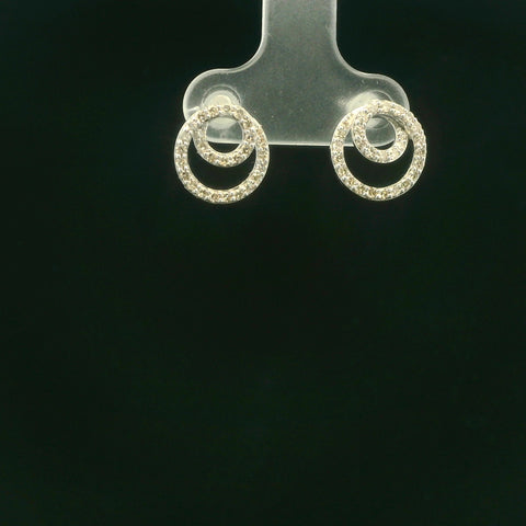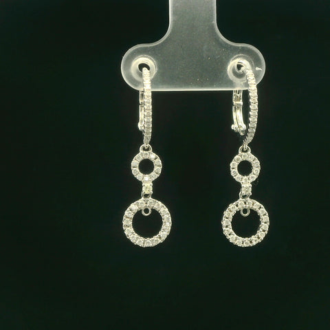 These earrings are crafted in 14k white gold and feature a classic double circle design. Each circle is paved with round cut diamonds that display excellent brilliance. These earrings are perfect for adding a touch...