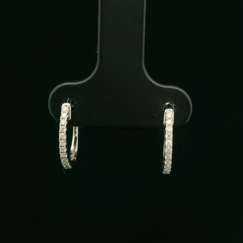 These earrings are crafted in 14k white gold and feature a classic double circle design. Each circle is paved with round cut diamonds that display excellent brilliance. These earrings are perfect for adding a touch...