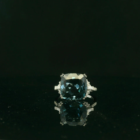 Exquisite cocktail ring featuring a stunning 9ct London Blue Topaz, set in a 14k white gold mounting. This ring showcases sophisticated design and impeccable craftsmanship.