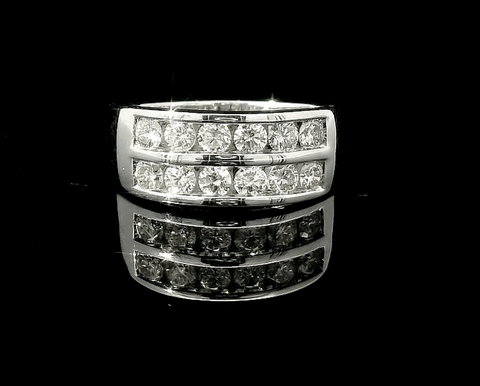 10K White Gold Rhodium Plated .50 carat total weight G/H VS Round Diamond Channel Band