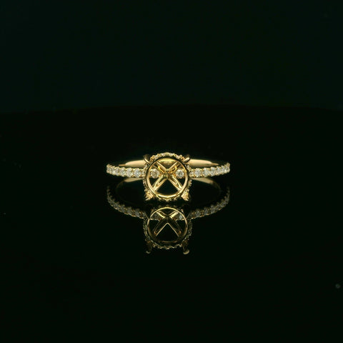 Craft your dream ring with this exquisite 14k yellow gold ring mount. This setting features a classic design with a .5 cttw lab grown diamond pave set band, ready to showcase your chosen center stone....