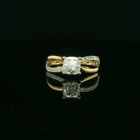 Exquisite lab grown 1.2 cttw diamond ring crafted in lustrous 14k yellow gold. Showcasing a cushion diamond. This ring is the perfect blend of classic design and modern elegance, ideal for adding a touch of...