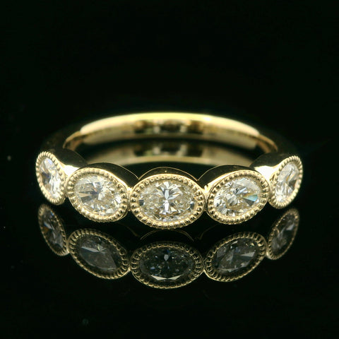 Experience timeless elegance with this exquisite 3/4 CTTW lab grown diamond band, crafted in radiant 14K yellow gold. The ring features a series of brilliant oval-cut diamonds, each meticulously set to maximize light reflection and...