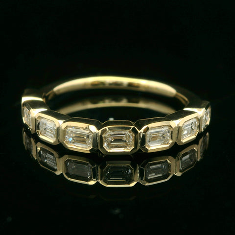 Celebrate your eternal bond with this exquisite lab grown diamond band. Crafted in lustrous 14K yellow gold, this ring features 5/8 CTTW emerald cut bezel set lab grown diamonds. With its sophisticated design and symbolic...