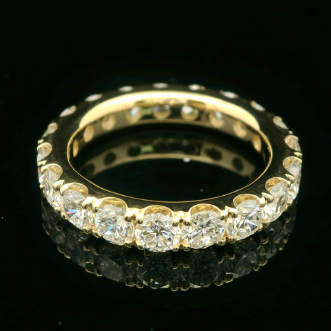 Exquisite 14K yellow gold eternity ring, showcasing a continuous circle of 3 CTTW lab grown diamonds. This timeless design symbolizes everlasting love, perfect for weddings, anniversaries, or a sophisticated everyday statement. The ring's seamless setting...