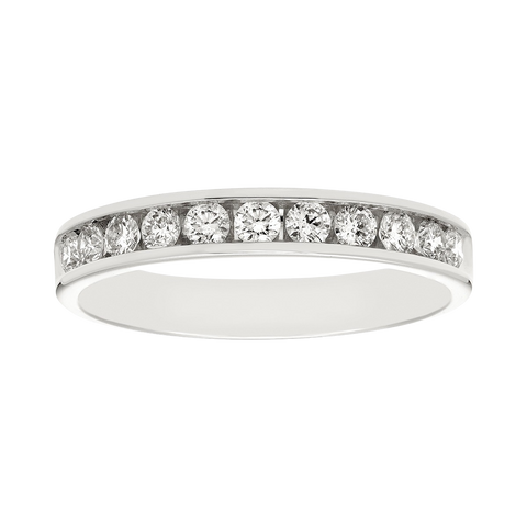 10K White Gold Rhodium Plated .50 carat total weight G/H VS Round Diamond Channel Band