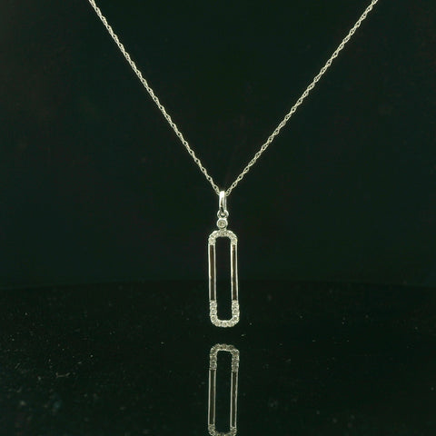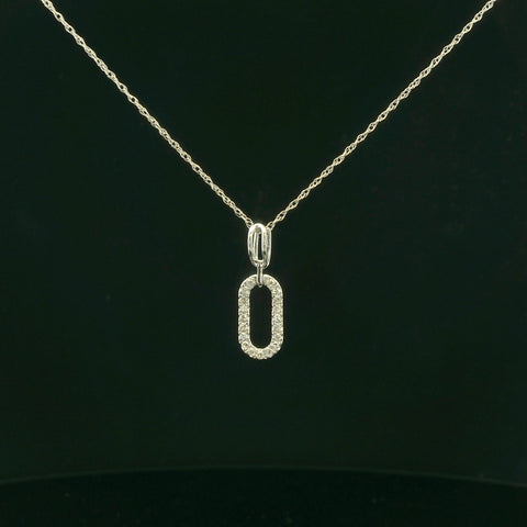Elevate your style with this exquisite paperclip diamond necklace. Featuring delicate, .10 cttw of brilliant-cut round diamonds set in a sleek, 14k white gold pendant suspended from a sterling silver chain. This timeless piece seamlessly...