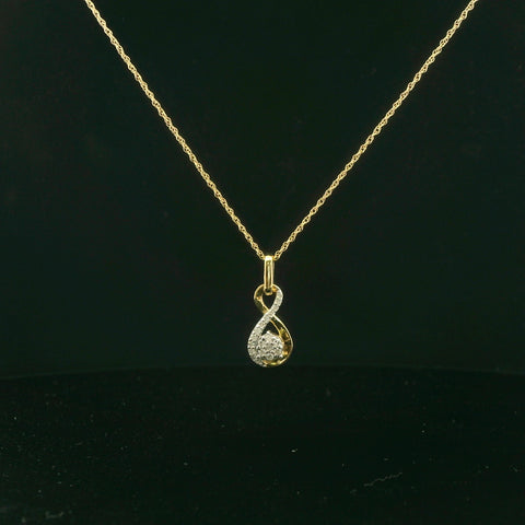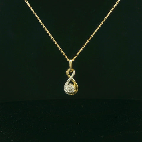 Exquisitely crafted, this charm necklace features a delicate infinity design in 14k radiant yellow gold. The pendant showcases a cluster of .08 cttw round brilliant cut diamonds, offering exceptional sparkle and fire. This elegant necklace...