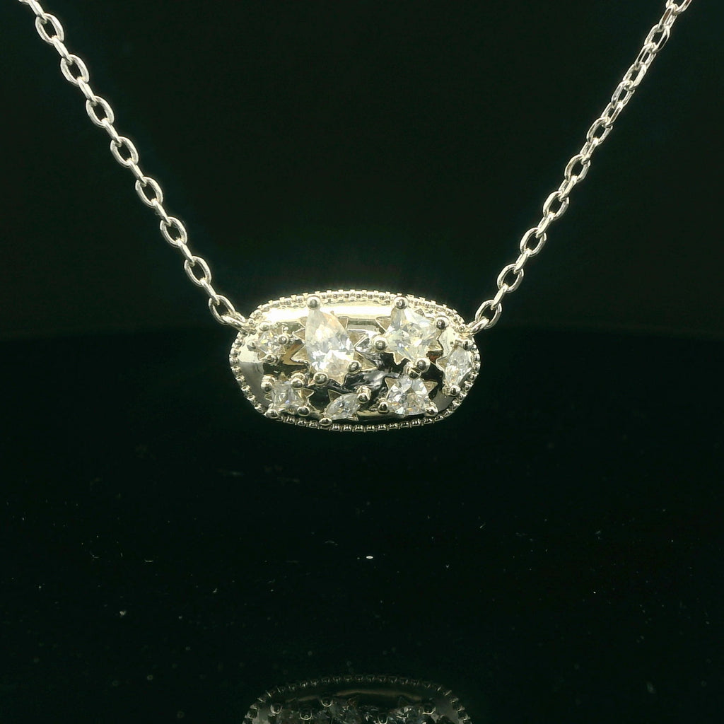 HOLLAND CRYSTAL SHORT PENDANT NECKLACE RHODIUM METAL WHITE CZ