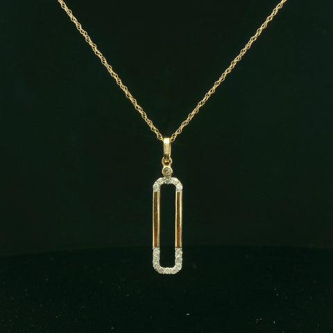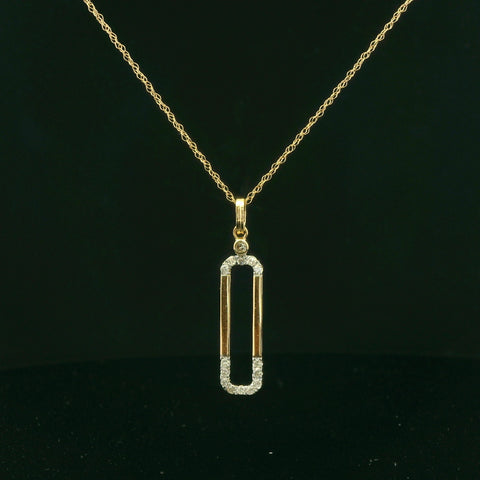 Elevate your style with this exquisite paperclip necklace, crafted in radiant 14k yellow gold. The delicate chain suspends a unique pendant featuring .10 cttw of brilliant-cut round diamonds, adding a touch of sophistication. This timeless...
