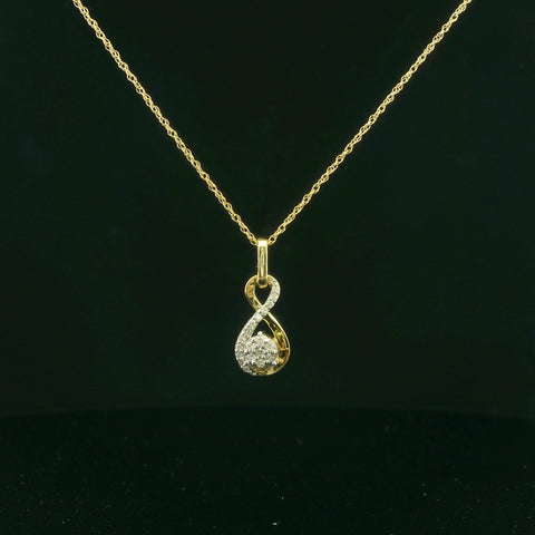 Exquisitely crafted, this charm necklace features a delicate infinity design in 14k radiant yellow gold. The pendant showcases a cluster of .08 cttw round brilliant cut diamonds, offering exceptional sparkle and fire. This elegant necklace...