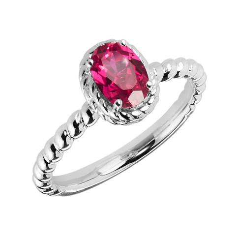 14k White Gold 5mm Round Ruby Ring with Diamond Halo (.35ct Ruby .39cttw Diamond)