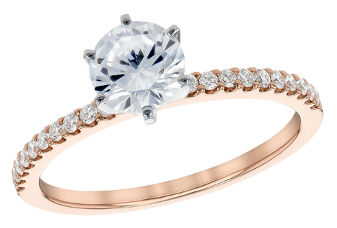 This exquisite 14k rose gold diamond ring features a brilliant-cut solitaire set in a finely crafted gold band. 1.28 cttw. The intricate detailing on the band enhances its elegance, making it a perfect choice for...