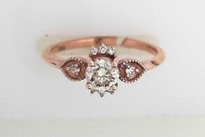 14K Rose Gold .56 carat total weight SI Buttercream Diamond (0.46 carat Center) Floral Ring