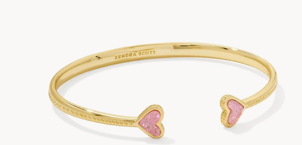 We’re crushin’ on our sweetest icon, and with the Framed Ari Heart Gold Cuff Bracelet in Light Pink Drusy, you can clearly see why! Made to be adjustable for a perfect fit, this cuff is bookended by two darling heart stones in a sleek metal frame, embellished with our signature hoofprint detailing for that extra KS touch.