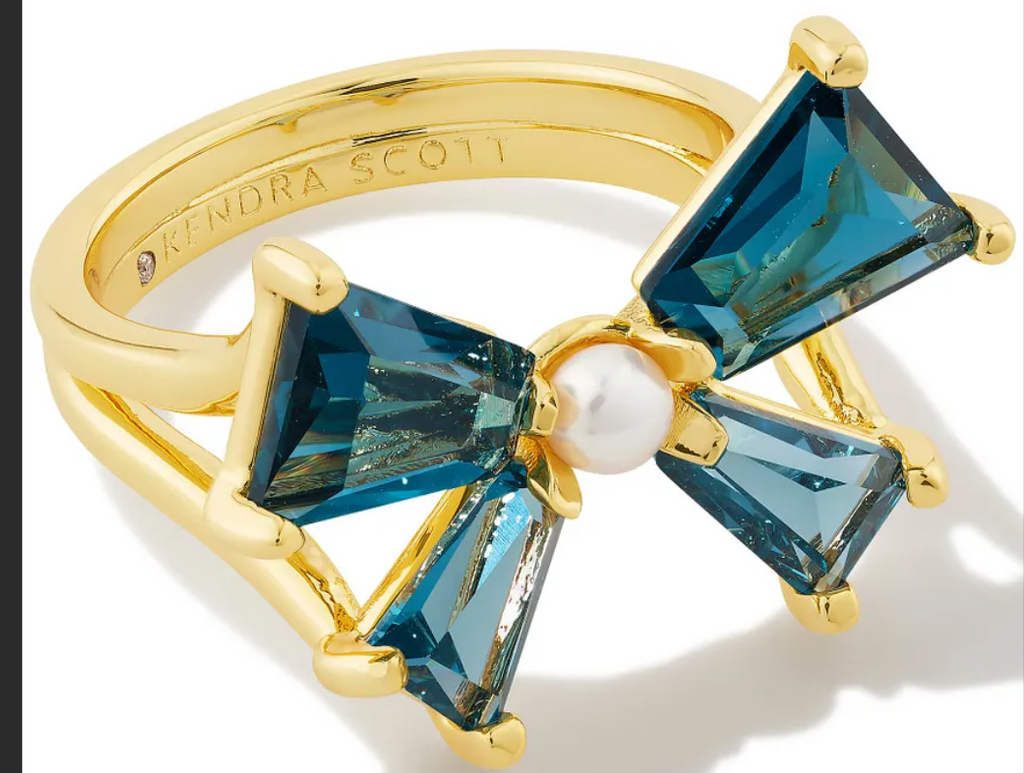Spark up conversation when you wear the Blair Gold Bow Cocktail Ring in Teal Mix. With its contemporary design and sparkling stone detailing, this novelty style is a glam take on a nostalgically sweet shape. We can’t get enough of this bow style—and you won’t be able to either.